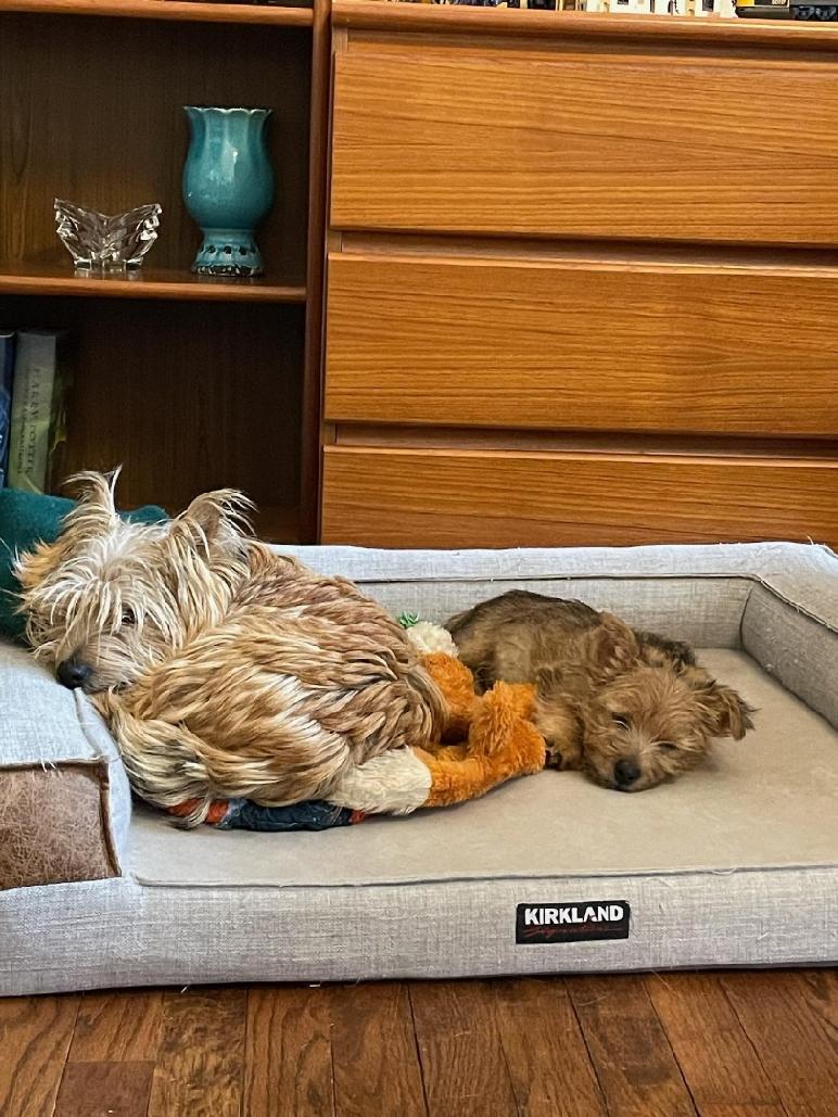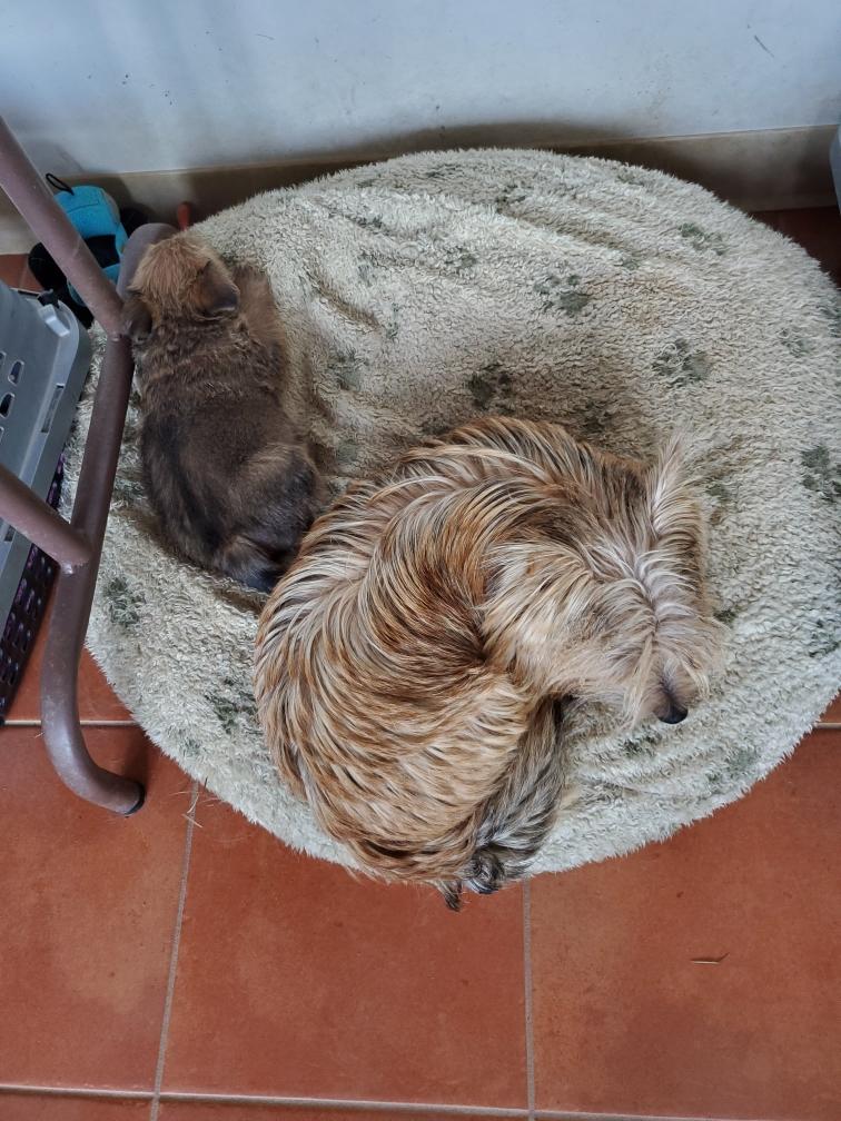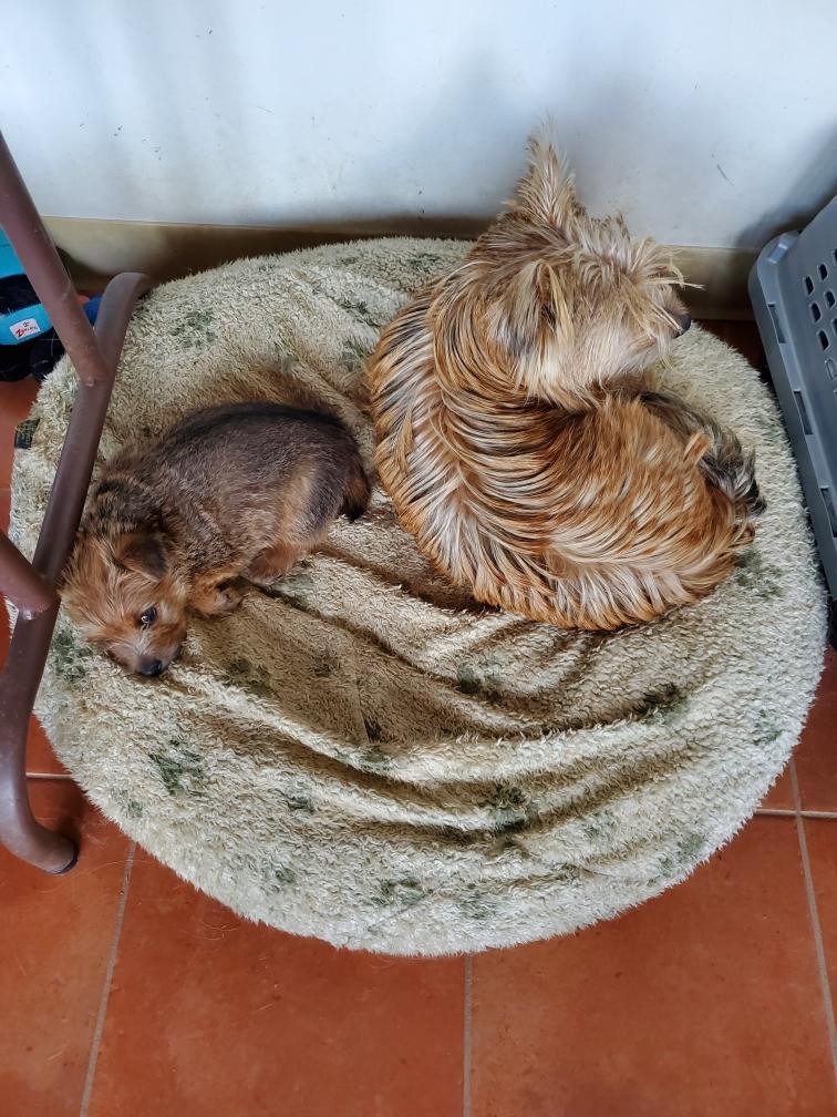 Chang taking a nap on one of the big dog beds in my living room. Later Mommy Siri joined Chang.
