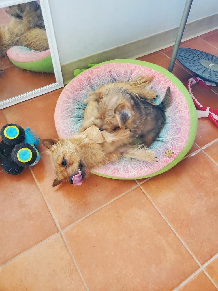 White nursing. I feel embarrassed about my "shaggy" Norwich. But I still do not want to stress Siri by stripping her until White is a bit older.