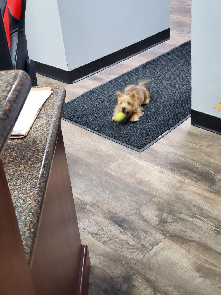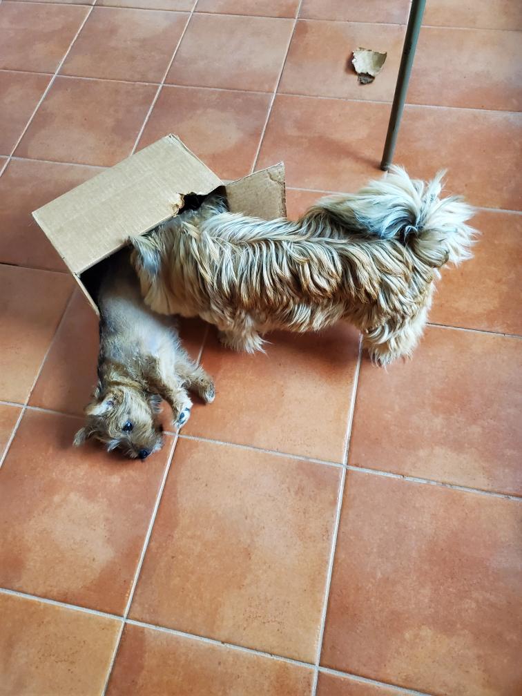 Siri guarding the approach to her puppy. I later picked up my postal scale which you can see in the picture.