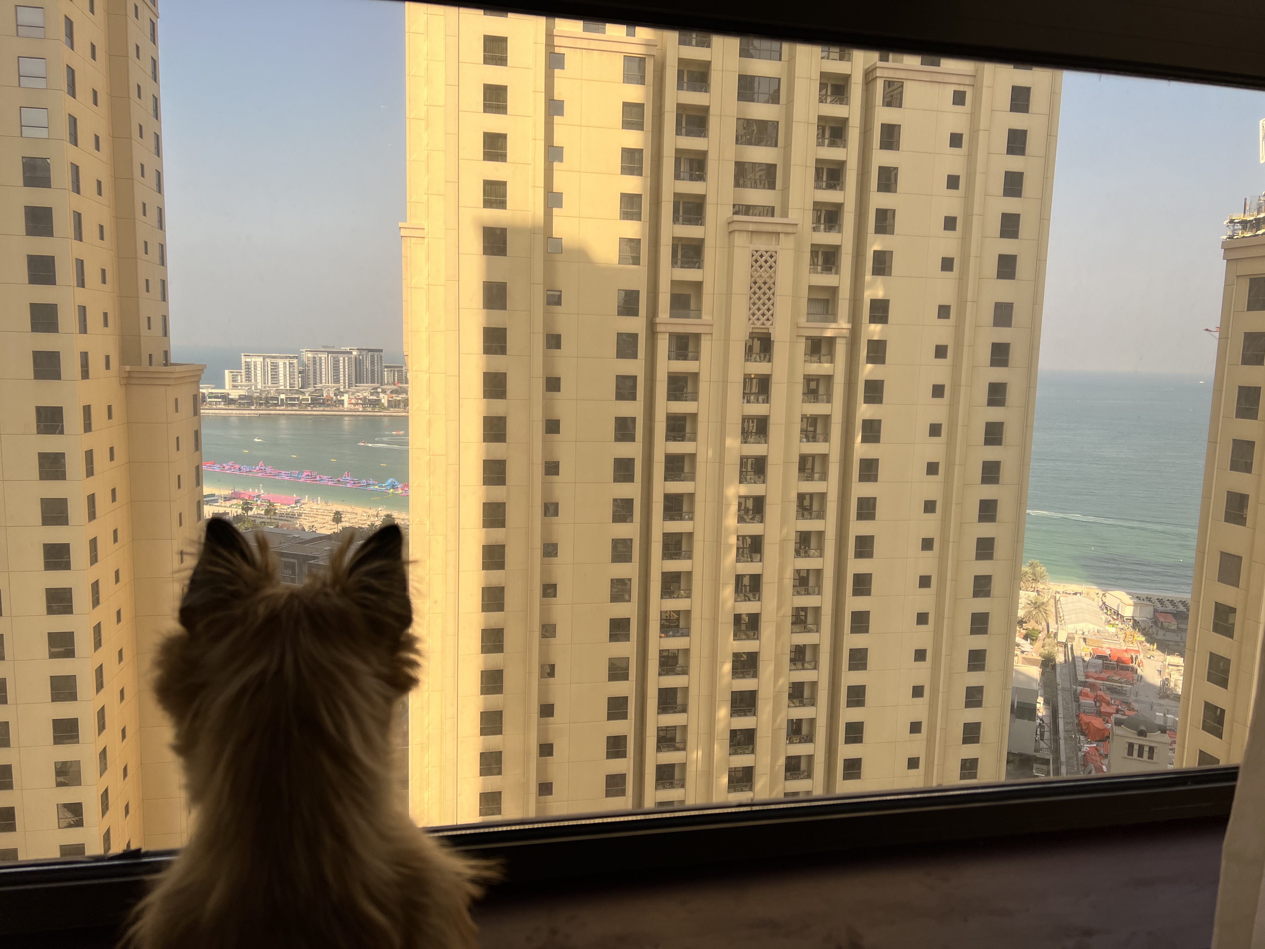 hotel in Dubai looking out at the Persian Gulf.