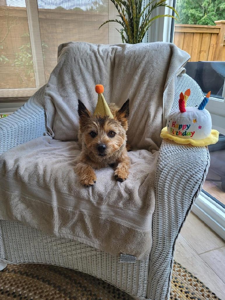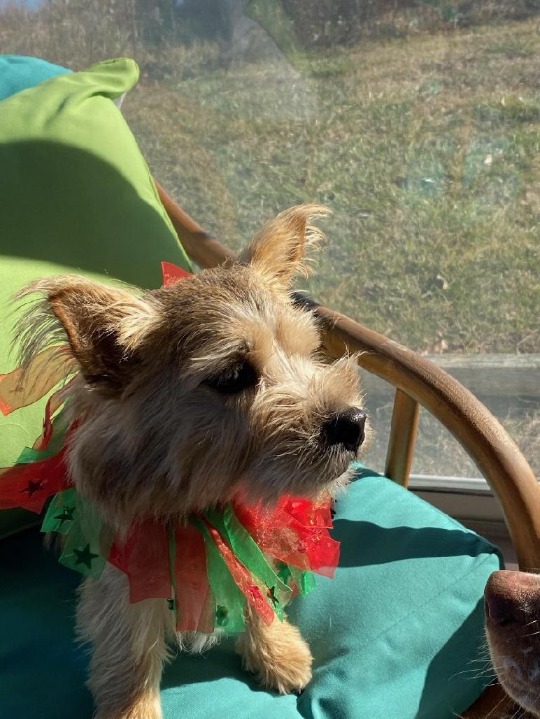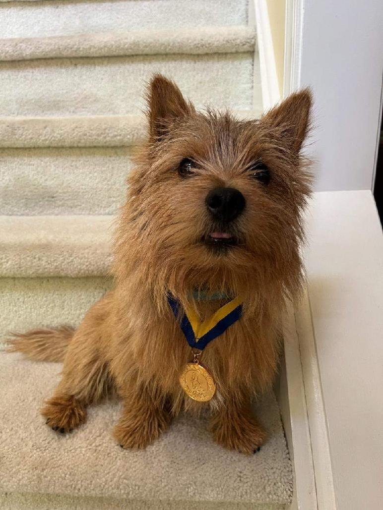 have a longer softer coat than most Norwich terriers.