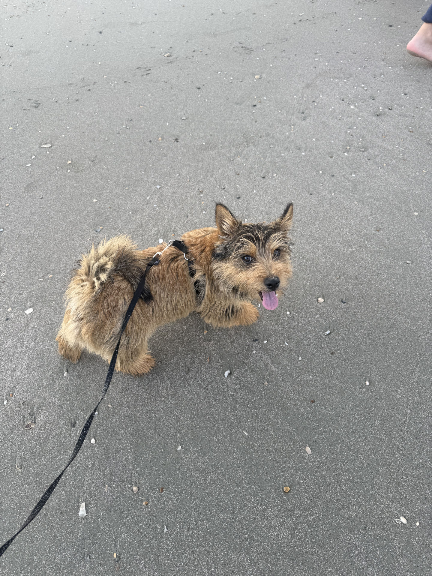 Cara took Archie ("Shaksper Leontes") to the beach.