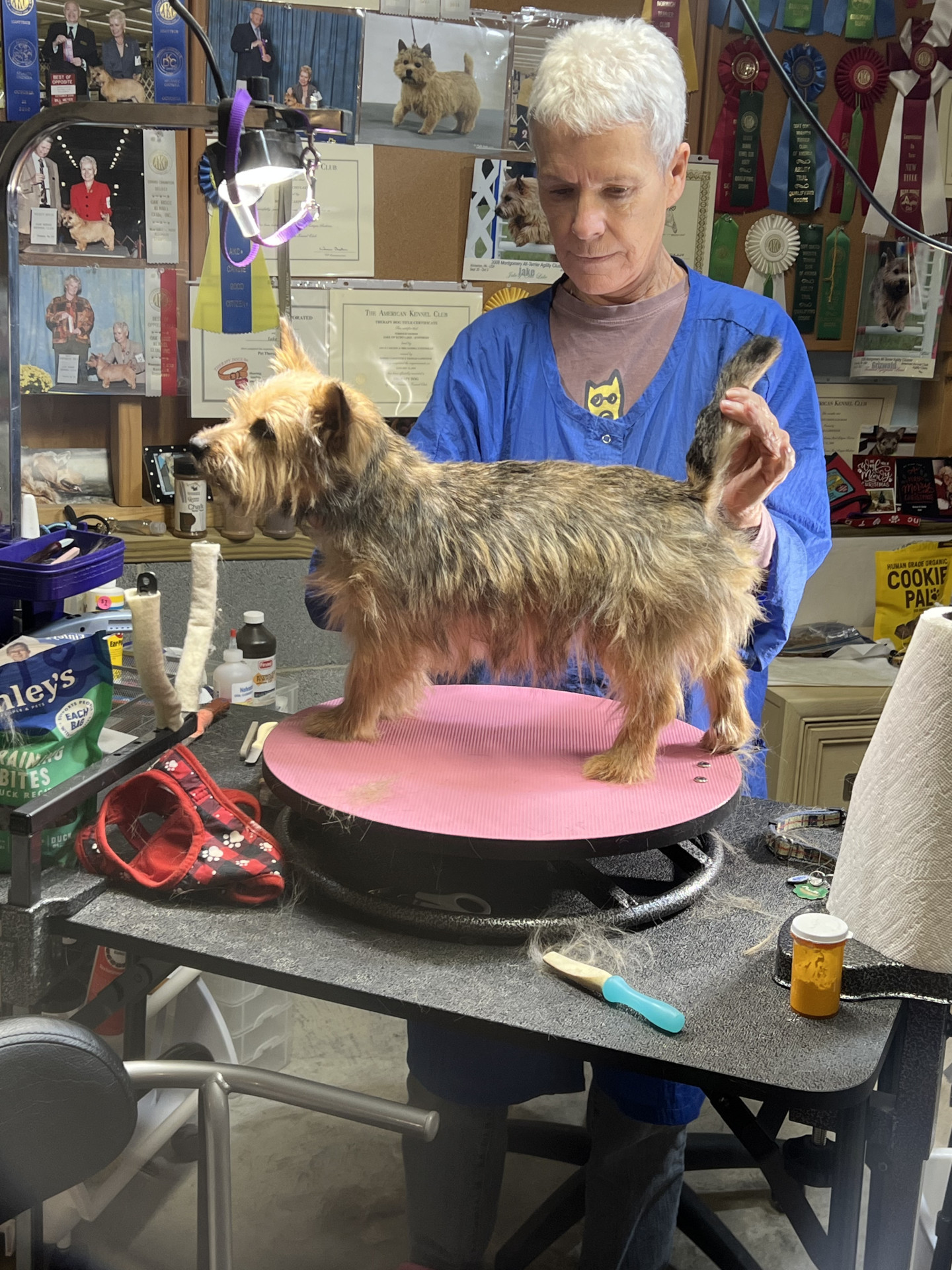 Barbara send me this picture of Suzi ("Shaksper Suzanna Monks At Keystone") being groomed and stacked by Bonnie.